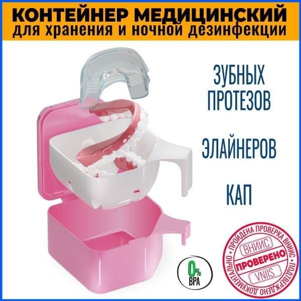 This premium 2-module denture case provides safe and secure storage, overnight processing, and disinfection for full-size dentures, retainers, aligners, mouthguards, bridges, and other dental appliances. The innovative design features a container with an internal tray that ensures complete drainage and drying of disinfectant solutions. Made from safe, odorless food-grade polypropylene, this case protects your dental appliances from damage and contamination. Individually packaged for hygiene.