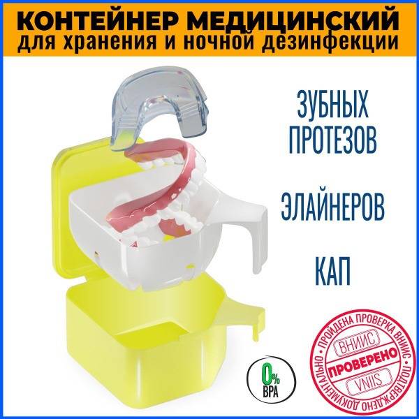This premium denture case provides secure storage and overnight disinfection for full-size dentures, aligners, retainers, mouthguards, bridges, and other dental appliances. The double-module design features a container and an inner tray with a drain grid, ensuring complete soaking and thorough drying after disinfection. Made from safe, odorless food-grade polypropylene, this case protects your dental appliances from damage and contamination. Individually packaged for hygiene.