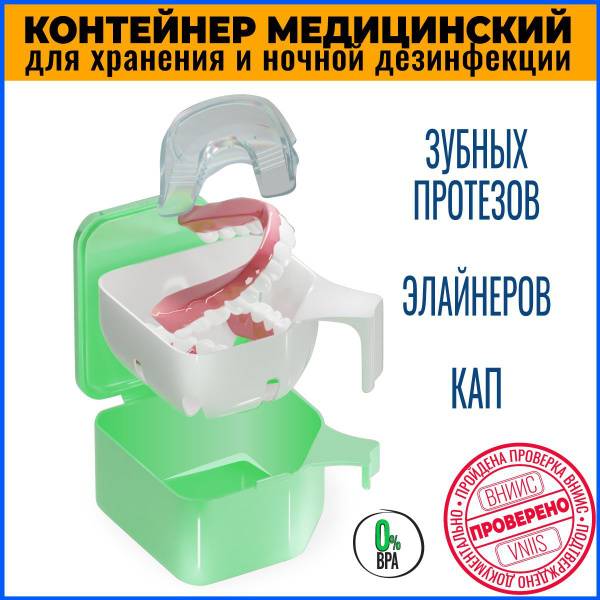 Description: This premium denture case provides safe and secure storage, cleaning, and disinfection of full-size dentures and other oral appliances. Designed to protect against damage and contamination, this double-module case comfortably holds full dentures, aligners, mouthguards (sports and dental), bridges, and various dental veneers. A unique internal tray ensures complete drainage of disinfecting solutions and thorough drying. Crafted from food-grade polypropylene, this odorless case is individually packaged for hygiene.