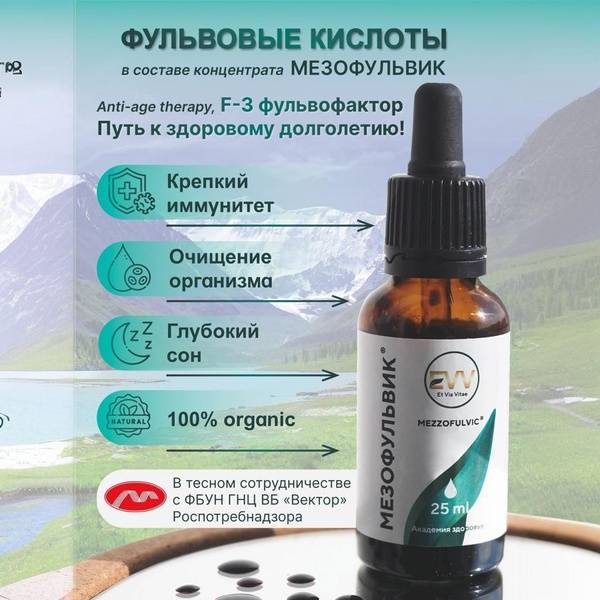 MesoFulvic Concentrate, from EVV GROUP, harnesses the potent power of high-concentration fulvic and humic acids sourced from the pristine Altai Mountains. This unique elixir offers a comprehensive approach to well-being, supporting your journey towards a healthier, more vibrant life.
