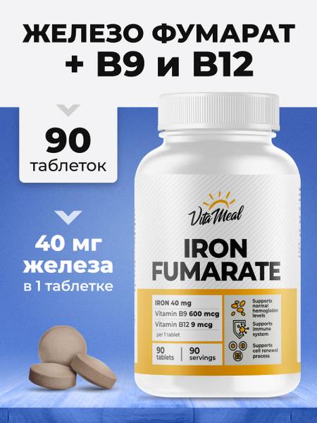 VitaMeal Iron Fumarate offers a convenient and effective solution. The added Vitamins B9 and B12 support optimal iron utilization and address potential deficiencies of these vital nutrients. Take one tablet daily with food and water to maintain energy levels and support a healthy, active lifestyle. Don't let iron deficiency hold you back – choose VitaMeal Iron Fumarate.