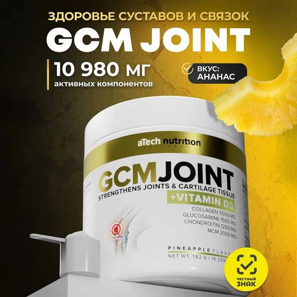 Π ΡΠΎΡΡΠ°Π² GCM Joint Π²Ρ ΠΎΠ΄ΡΡ Π½Π΅ ΡΠΎΠ»ΡΠΊΠΎ ΠΊΠ»ΡΡΠ΅Π²ΡΠ΅ ΠΊΠΎΠΌΠΏΠΎΠ½Π΅Π½ΡΡ, Π½ΠΎ ΠΈ Π³ΠΈΠ΄ΡΠΎΠ»ΠΈΠ·ΠΎΠ²Π°Π½Π½ΡΠΉ ΠΊΠΎΠ»Π»Π°Π³Π΅Π½ Ρ Π³ΠΈΠ°Π»ΡΡΠΎΠ½ΠΎΠ²ΠΎΠΉ ΠΊΠΈΡΠ»ΠΎΡΠΎΠΉ, ΡΠ΅ΡΠ°, Π²ΠΈΡΠ°ΠΌΠΈΠ½ Π‘, Π²ΠΈΡΠ°ΠΌΠΈΠ½ D3, ΠΊΠ°Π»ΡΡΠΈΠΉ ΠΈ Π±ΡΠΎΠΌΠ΅Π»Π°ΠΉΠ½. ΠΡΠΎΡ ΡΠΈΠ½Π΅ΡΠ³Π΅ΡΠΈΡΠ΅ΡΠΊΠΈΠΉ ΠΊΠΎΠΌΠΏΠ»Π΅ΠΊΡ Π½Π°ΠΏΡΠ°Π²Π»Π΅Π½ Π½Π° ΡΠ»ΡΡΡΠ΅Π½ΠΈΠ΅ ΠΏΠΎΠ΄Π²ΠΈΠΆΠ½ΠΎΡΡΠΈ ΡΡΡΡΠ°Π²ΠΎΠ², ΡΠ½ΠΈΠΆΠ΅Π½ΠΈΠ΅ Π΄ΠΈΡΠΊΠΎΠΌΡΠΎΡΡΠ° ΠΈ ΡΡΠΊΠΎΡΠ΅Π½ΠΈΠ΅ Π²ΠΎΡΡΡΠ°Π½ΠΎΠ²Π»Π΅Π½ΠΈΡ ΠΏΠΎΡΠ»Π΅ ΡΠΈΠ·ΠΈΡΠ΅ΡΠΊΠΈΡ Π½Π°Π³ΡΡΠ·ΠΎΠΊ ΠΈ ΡΡΠ°Π²ΠΌ.