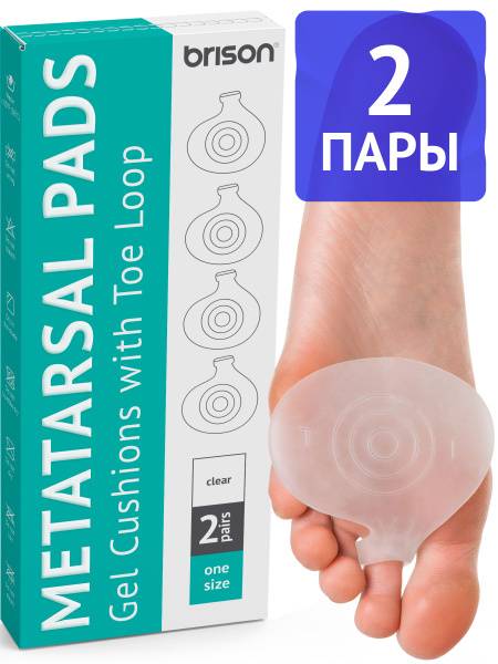 Experience ultimate comfort with Brison gel toe separators and metatarsal pads. Our innovative design features secure toe fixation, providing superior cushioning and pressure relief for the forefoot during walking or running. Say goodbye to burning feet, painful bunions, and the formation of calluses and corns. These pads effectively reduce impact, easing discomfort and preventing fatigue at the end of the day. Ideal for alleviating pain associated with metatarsalgia, neuromas, and plantar fasciitis. Simply wash with cool soapy water and air dry. Made from high-quality, translucent silicone. Includes 4 pads.