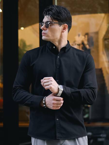 The slim fit silhouette flatters any physique, while the sleek black color and subtle detailing create a timeless and stylish look. High-quality black buttons add a touch of refined sophistication, complementing the overall design. This versatile shirt pairs effortlessly with jeans, chinos, or dress pants, allowing you to create a range of stylish outfits for any occasion.