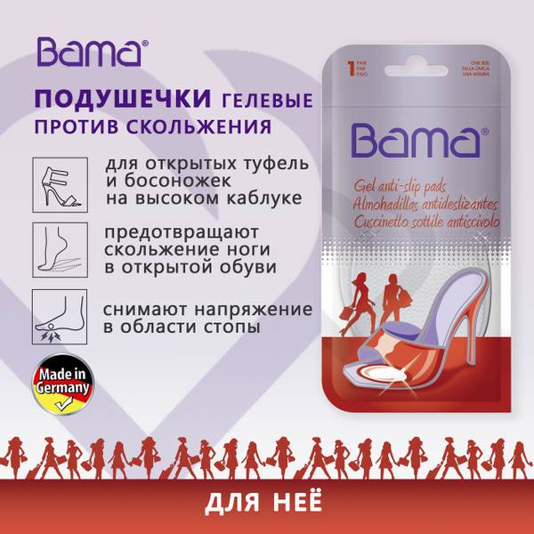 Description: Experience ultimate comfort and stay securely in your favorite open-toe shoes with Bama gel shoe pads. These invisible, high-quality silicone pads from Germany's leading shoe accessory expert prevent slipping in heels, sandals, and clogs. Enjoy superior cushioning, relieve foot pressure, and say goodbye to discomfort. Simply adhere the pads as shown, and even if the adhesive wears off, they're easily rinsed and reused. Perfect for high heels and open-toed footwear.