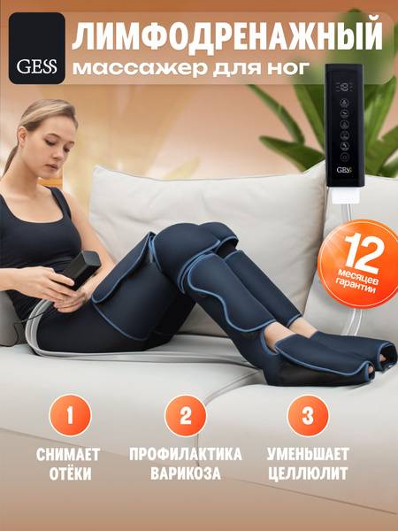 The GESS EMMY leg massager offers a luxurious at-home experience for air compression therapy and lymphatic drainage. This innovative device gently massages your feet, calves, and thighs, effectively addressing a wide range of leg issues, including: