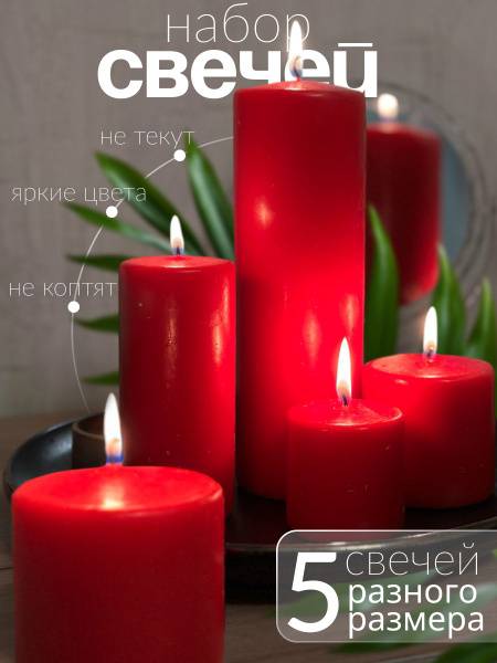 Indulge in the enchanting glow and subtle fragrance of our exquisite set of five red pillar candles. Each candle boasts a different height (19cm, 12cm, 10cm, 6cm, and 5cm), adding visual interest and dimension to any space. Their classic cylindrical shape and rich red color bring a touch of timeless elegance to your home.