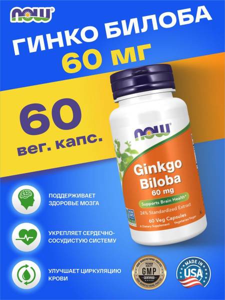 Title: NOW Ginkgo Biloba 60mg, 60 Capsules - For Memory, Brain Health, Heart, Circulation & Reproductive System Support