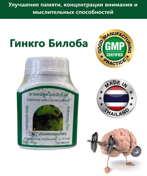 Ginkgo Biloba, Thanyaporn, Capsules, Memory, Concentration, Cognitive Function, Blood Circulation, Cardiovascular Health, Atherosclerosis, Stroke, Heart Attack, Sleep, Fatigue, Neurosensory Disorders, Vision, Hearing, Thai Herbs, Natural Supplement, Dietary Supplement, 100 Count, Supplement
