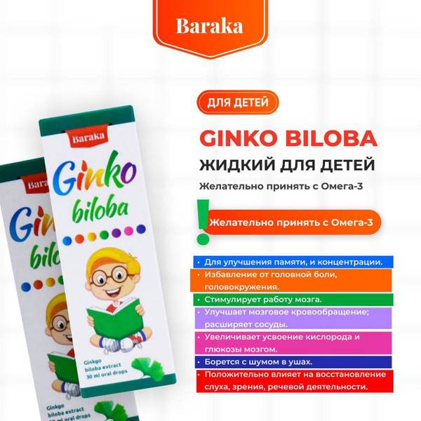 Support your child's cognitive function with our Ginkgo Biloba extract. This 30ml liquid supplement is specifically formulated for children to help improve memory, concentration, and clarity of thought. It may also help alleviate headaches, dizziness, and memory lapses. Ginkgo biloba enhances the brain's absorption of oxygen and glucose, potentially improving hearing, vision, and speech.