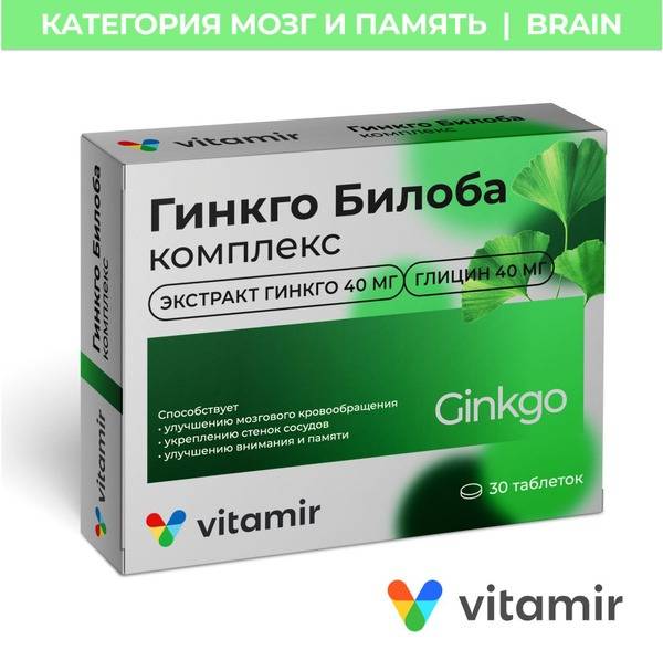 Experience the power of nature with VITAMIR's Ginkgo Biloba & Glycine Complex. This supplement combines the ancient wisdom of Ginkgo Biloba, a "living fossil" boasting a 240-million-year history, with the benefits of Glycine. Rich in organic acids, polysaccharides, plant fats, essential oils, amino acids, and macroelements, Ginkgo Biloba promotes healthy blood circulation, improves vessel elasticity and strength, and enhances oxygen delivery to brain cells. This leads to improved memory, focus, and reduced fatigue. Glycine, a crucial amino acid, supports metabolism, promotes restful sleep, reduces stress, and enhances cognitive function. Protect your cardiovascular health and sharpen your mind naturally with VITAMIR's Ginkgo Biloba & Glycine Complex. 30 tablets per pack.