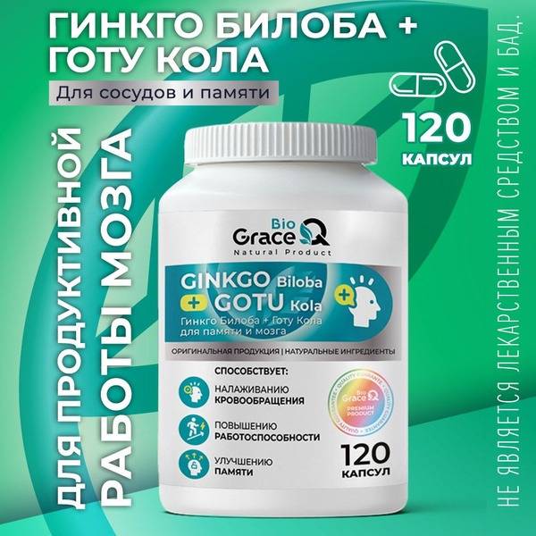 GraceBioQ's Ginkgo Biloba & Gotu Kola is a certified, high-quality supplement that meets Eurasian Economic Union (EAEU) compliance standards. It's not a medicine or a dietary supplement in the regulatory sense, but rather a concentrated herbal blend supporting overall well-being. 120 capsules per bottle.
