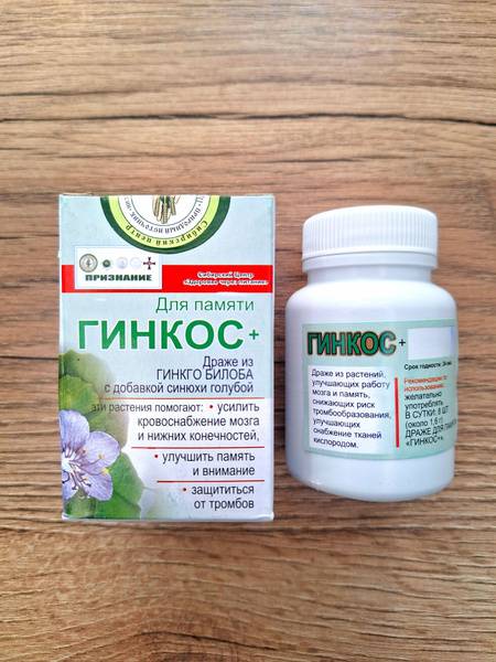 Description: Ginkgos+ "Health-Enhancing" phytogranules are a memory support complex. These dragees combine Ginkgo Biloba and Siberian Bugloss, enhancing cerebral and lower limb blood circulation, improving memory and focus, and offering protection against thrombus formation. Ginkgo Biloba leaf, renowned for its ability to improve tissue oxygenation, enhances memory and helps relieve leg cramps. It's also beneficial for headaches and asthma. Siberian Bugloss adds a calming effect, normalizing breathing and supporting healthy cerebral and coronary circulation. 48g. Siberian Health Center.