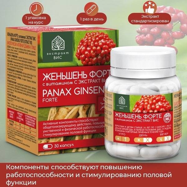 Ginseng Forte, Vitamin C, Extract VIS, Panax Ginseng, Ginsenosides, Adaptogen, Energy Booster, Cognitive Enhancement, Immune Support, Sexual Health, Dietary Supplement, Capsules, Natural Supplement, Herbal Supplement, Stress Relief, Fatigue Relief, Memory Improvement, Focus Enhancement, Stamina Booster.