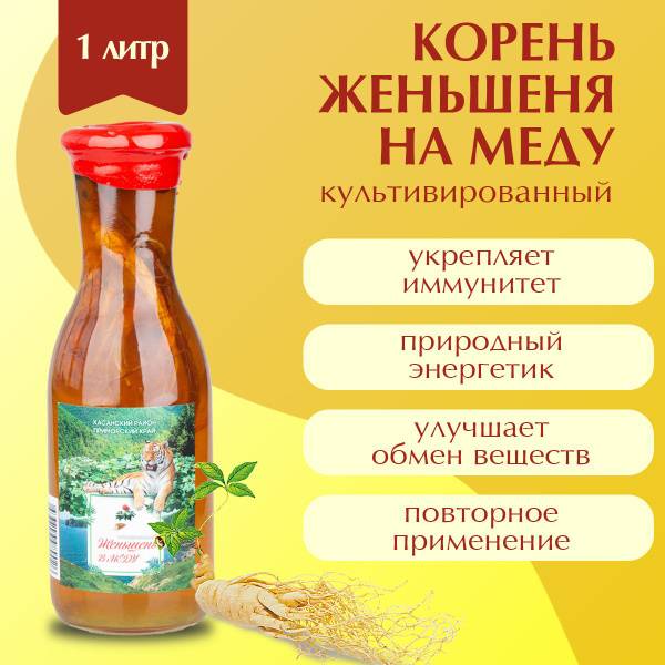 Keywords: Ginseng, honey, adaptogen, immune system, energy boost, cognitive function, cardiovascular health, blood pressure, cholesterol, blood sugar, stress relief, fatigue, reproductive health, anti-inflammatory, 7-year-old ginseng, 1 liter, natural remedy, health supplement, herbal remedy, Schisandra chinensis, Amur grape