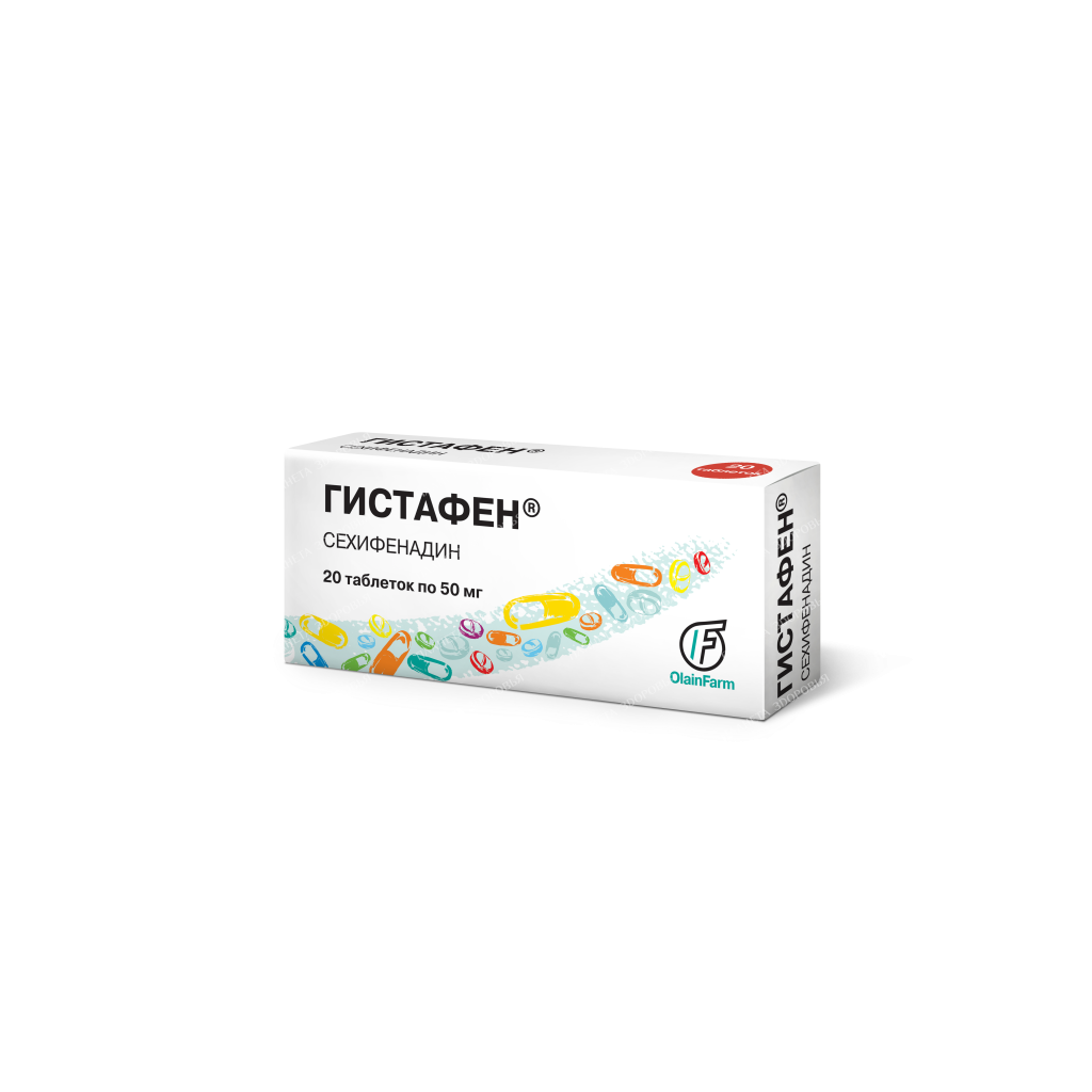 Keywords: Histafen, allergy relief, hay fever, allergic rhinitis, antihistamine, sechifenadine hydrochloride, allergy medication, skin itching, allergic dermatitis, neurodermatitis, lichen planus, effective relief, long-lasting action, safe and well-tolerated, 50mg tablets, 10x2 pack, prescription medication.