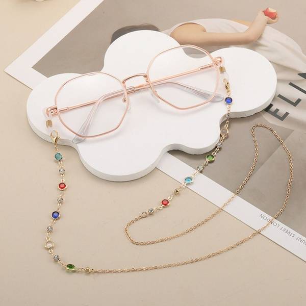 Discover our exquisite multi-color glasses chain, crafted from durable copper, lustrous pearls, and dazzling crystals. This stylish eyewear accessory measures a convenient 70 cm (27.56 inches), providing a secure and fashionable way to keep your glasses accessible.