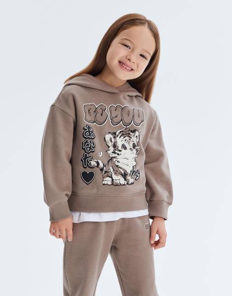 Indulge in ultimate comfort and effortless style with the Gloria Jeans Brown Terry Fleece Hoodie. Made from luxuriously soft and warm terry fleece, this women's hoodie is designed for all-day wear. A striking, large-scale print adds a touch of personality, while the relaxed fit with dropped shoulders provides ample room for movement. The ribbed cuffs and hem ensure a snug, comfortable finish. Perfect for fall and winter fashion, this comfortable hoodie is a casual wardrobe staple.