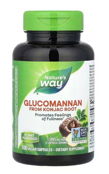 Glucomannan, Nature's Way Glucomannan, konjac root, weight loss, appetite suppressant, blood sugar support, cholesterol support, digestive health, fiber supplement, prebiotic, weight management, healthy digestion, constipation relief, natural fiber, 665mg, 100 capsules, healthy gut, healthy lifestyle, weight loss supplement.