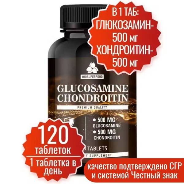 Miosuperfood Joint Support, featuring 500mg Glucosamine and 500mg Chondroitin per tablet (1200mg total), offers superior joint health support. Trusted for over 5 years and sold in pharmacies across Russia, our commitment to quality is unwavering, with rigorous controls at every stage of production.