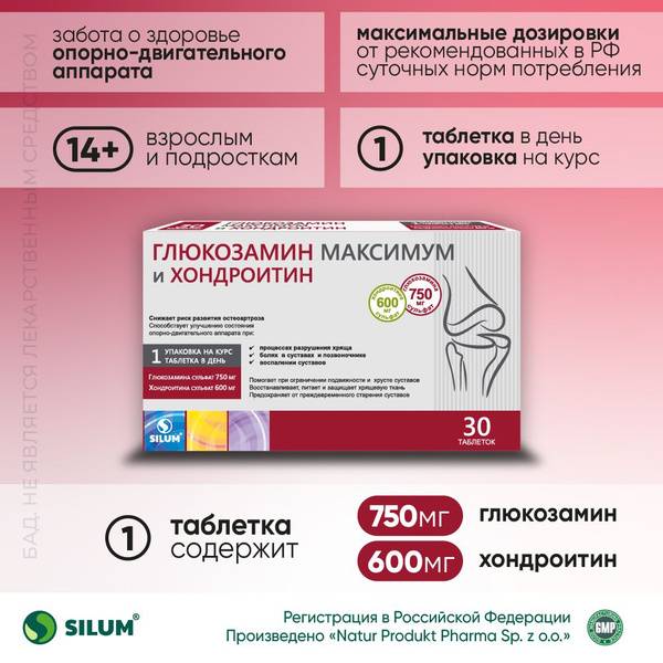 Glucosamine, Chondroitin, Joint Pain Relief, Joint Support, Cartilage Health, Joint Mobility, Muscle Fatigue, Back Pain, Spine Pain, ViaVit, Glucosamine Sulfate, Chondroitin Sulfate, Dietary Supplement, Once Daily, White Tablets, Coated Tablets.