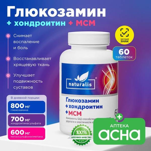 Glucosamine, Chondroitin, MSM, Joint pain relief, Joint support, Cartilage health, Bone health, Ligament health, Joint mobility, Inflammation reduction, Naturalis, Supplements, Vitamins for joints, Joint supplement, Arthritis support, Osteoarthritis, Joint flexibility, Active lifestyle, Over 14, 60 tablets, Russia.