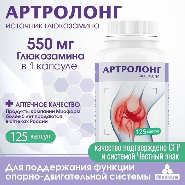 Glucosamine Hydrochloride, ArthroLong, Myopharm, Joint Pain, Osteoarthritis, Joint Health, Cartilage Support, Ligament Support, Dietary Supplement, Chondroprotector, Arthritis Relief, Joint Mobility, Pain Relief, БАД, глюкозамин, артроз, артрит, суставы, связки, Миофарм, Артролонг.