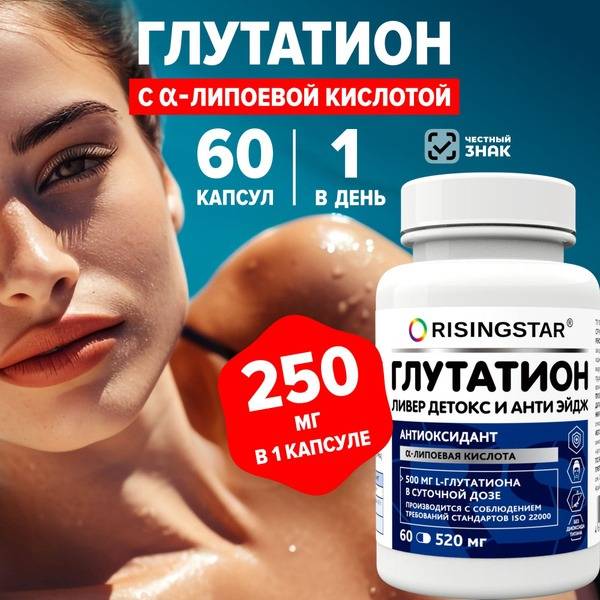 RisingStar L-Glutathione 250mg capsules, enhanced with alpha-lipoic acid, offer potent antioxidant support for cellular health, anti-aging, and detoxification. This powerful combination combats oxidative stress, reduces the appearance of wrinkles and age spots, improves skin elasticity, and boosts the immune system. L-Glutathione's reduced form ensures optimal cellular absorption, replenishing depleted levels often associated with aging. Alpha-lipoic acid further enhances glutathione absorption. Ideal for liver support and post-illness recovery, RisingStar Glutathione is a comprehensive supplement promoting vitality and youthful radiance. Each capsule delivers 250mg of bioavailable L-Glutathione. Supports healthy liver function, brain cell protection, and overall well-being. Take 1-2 capsules daily.