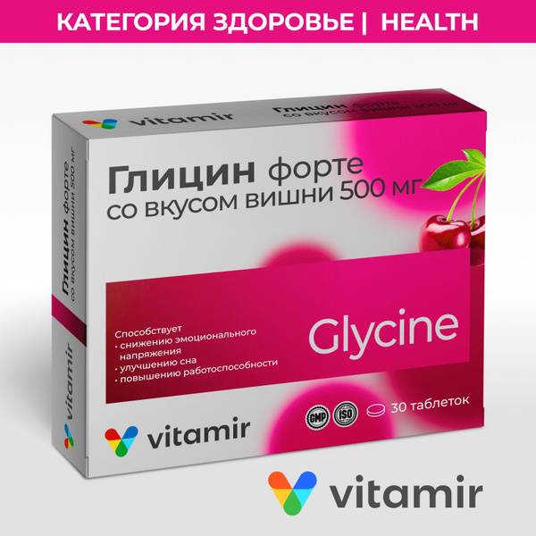 Glycine Forte 500mg VITAMIR®, a cherry-flavored dietary supplement, helps reduce emotional stress, improve sleep quality, and boost cognitive function. Modern life demands resilience against psychological stress, which can lead to reduced concentration, impaired memory, poor sleep, and nervous system exhaustion. Glycine, a key amino acid, promotes relaxation and improves mental performance. Formulated with added B vitamins (B1, B6, B12) and Vitamin C to support nervous system health and energy levels, plus inulin for gut health and improved nutrient absorption. Combat stress and enhance your well-being with Glycine Forte 500mg VITAMIR®.