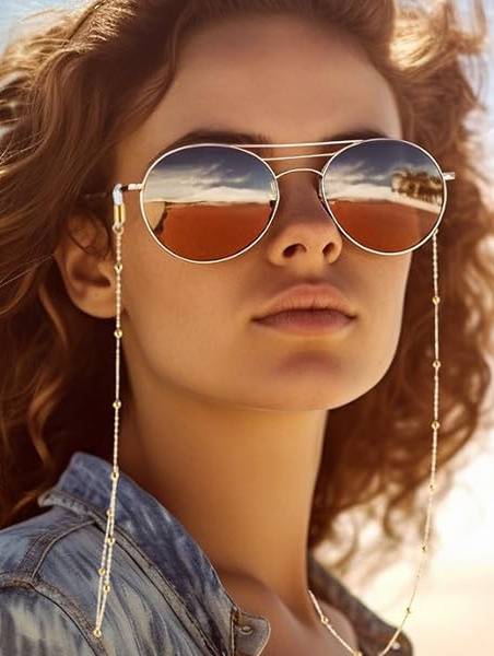 This year's must-have accessory: a stylish gold eyeglass chain adorned with delicate details. Perfectly complements other jewelry and features secure silicone loops for glasses. Practical and chic, it's indispensable for summer vacations and everyday use with sunglasses or prescription eyeglasses. Versatile enough to also hold face masks or wear as a necklace. Keep your eyewear safe and sound, eliminating the worry of misplacing your glasses, especially when a case isn't handy.