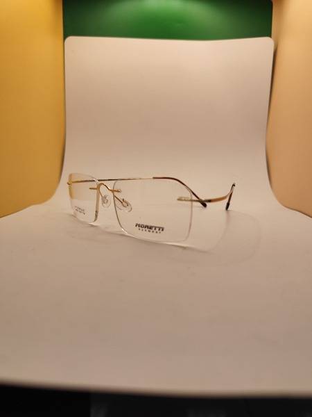 Experience unparalleled comfort and durability with these gold titanium rimless men's eyeglass frames by Moretti. Incredibly lightweight, you'll barely feel them on your face. These impact-resistant eyeglasses are virtually unbreakable – durable enough to withstand even sitting on them. These durable eyeglasses and lightweight eyeglasses are also men's eyeglasses and gold eyeglasses. Includes a protective eyeglass case and cleaning cloth. Size: 54-18-140. These titanium eyeglasses are rimless eyeglasses.