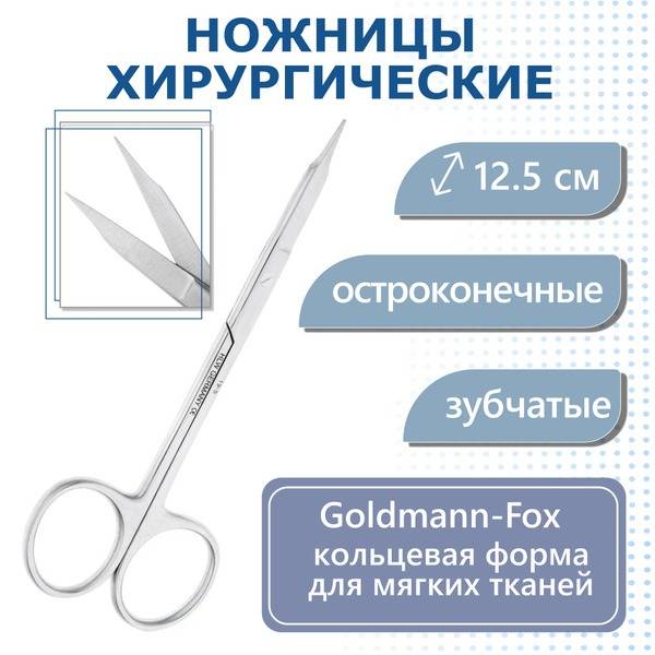 surgical scissors, goldman fox scissors, straight scissors, serrated scissors, surgical instrument, soft tissue scissors, precision scissors, german surgical scissors, 12.5cm scissors, martensitic steel scissors, DIN 1.4006, X10Cr13, 12X13, high quality scissors, medical scissors, HLW, 19-5*