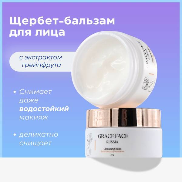 Experience the luxurious GRACEFACE Hydrophilic Cleansing Sherbet Balm (50g), infused with grapefruit extract. This multi-tasking balm effortlessly removes waterproof and regular makeup, cleanses away dirt and sunscreen, minimizes blackheads and excess oil, and regulates sebum production. Superior to traditional hydrophilic oils, its richer texture ensures smooth and easy application without the need for scooping. Unlike other firm sherbet cleansers, GRACEFACE's unique airy, cloud-like consistency melts effortlessly onto your skin. Formulated with skin-loving ingredients, including grapefruit extract (anti-inflammatory, antibacterial, and antioxidant), coconut oil (hydrating and nourishing), and Vitamin E (powerful antioxidant and anti-aging agent), this balm delivers real results. Its delightful fragrance and elegant gift box make it a perfect present for any occasion. Ideal for dry and normal skin, but suitable for all skin types. Treat yourself or someone special to the ultimate cleansing experience.