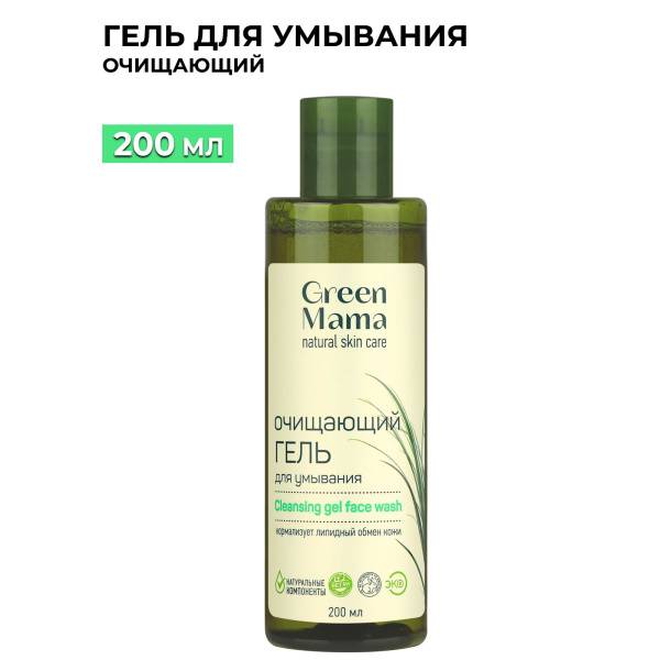 Green Mama, facial cleanser, green tea, antioxidant, cleansing gel, sensitive skin, all skin types, deep cleansing, pore cleansing, hydration, D-panthenol, allantoin, betaine, eco-certified, cruelty-free, natural skincare, makeup remover, anti-aging, free radical damage, 200ml, green tea extract, lemon extract, mint extract, organic skincare.