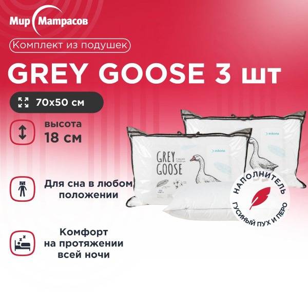Experience cloud-like comfort with the Grey Goose anatomical pillow, a premium 3-piece set designed for superior sleep. This classic pillow features three chambers with varying proportions of luxurious goose down and feather for optimal support and comfort. The center chamber, filled with a higher percentage of feather, provides firm support, while the side chambers filled with 100% goose down offer a gentle, cloud-like softness. Crafted with a breathable cotton cover, this hypoallergenic pillow gently cradles your head and neck, ensuring restful sleep in any position. Enjoy the natural breathability and moisture-wicking properties of genuine goose down and feather for a truly luxurious and comfortable night's sleep.