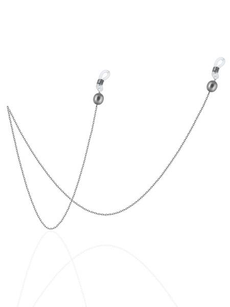 Keywords for SEO: eyeglass chain, glasses chain, pearl eyeglass chain, grey pearl chain, rhodium plated, jewelry alloy, eyewear accessories, eyeglass holder, glasses holder, spectacle chain, necklace for glasses, grey pearl jewelry, fashion accessories, 8x9mm pearls, 74cm chain
