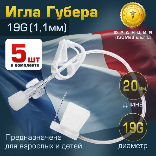 High-quality Huber needles (19G, 1.1mm diameter, 20mm length, 5 pack) designed for safe and reliable access to implantable ports. Manufactured by ISOMed s.a.r.l. (France), these needles are ideal for prolonged infusions (up to 72 hours) of analgesics, chemotherapeutic agents, parenteral nutrition, and blood products. The unique Huber needle tip design ensures easy insertion and prolonged membrane lifespan, minimizing the risk of port damage. Unlike silicone-coated needles, these needles maintain a secure seal, reducing the risk of needle dislodgement.
