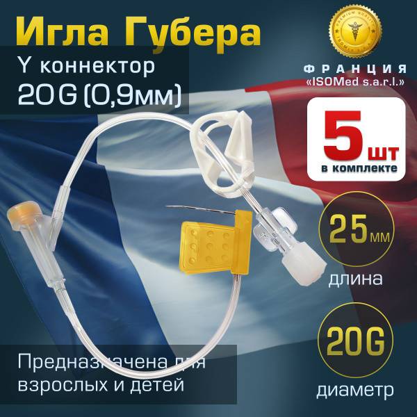 This 5-pack of 20G x 25mm Huber needles with extension tubing and Y-connector provides reliable access to implanted port systems. Designed for extended infusions (up to 72 hours), these needles are ideal for administering pain medication, chemotherapy, intravenous nutrition, and blood products. The unique Huber needle tip design ensures gentle penetration and prolonged membrane integrity, maintaining the port system's hermetic seal for years. Unlike silicone-coated needles, these needles reduce the risk of accidental dislodgement.