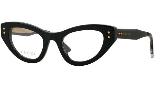 Make a statement with the Gucci 1083O 001, a bold and chic black cat-eye frame for women. This modern take on a classic design features dramatically upswept temples, reminiscent of the iconic Hollywood glamour of the 1950s-80s, worn by legendary actresses like Grace Kelly, Elizabeth Taylor, and Audrey Hepburn. The undeniably feminine silhouette is surprisingly lightweight, weighing only 42 grams with lenses. With a 139mm frame width (measured inside from temple to temple), it's perfectly suited for medium to large faces. Its versatile style complements a wide range of outfits, making it the ideal everyday frame. The Gucci 1083O is surprisingly flattering on most face shapes. Signature Gucci details include metallic striped engravings on the inner temples and gold Horsebit (stirrup) accents, a nod to the House's rich heritage. The golden Gucci logo on the temples adds a touch of retro elegance. The frame boasts a glossy black finish, beautifully contrasted by the golden logo. This purchase includes a luxurious velvet case, Gucci certificate of authenticity, manufacturer instructions, and microfiber cleaning cloth. Officially certified in Russia. Made in Italy. Includes a 1-year manufacturer's warranty.