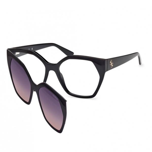 Elevate your style with GUESS eyewear. A globally recognized and beloved brand with boutiques in over 115 countries, GUESS frames combine confidence and style. This women's collection offers exceptional quality, fashionable designs, and a wide selection of silhouettes to complement any face shape. Crafted to the highest standards, these frames are built to last. Find the perfect pair to accentuate your features and create a unique look. GUESS 50222 001 features a convenient clip-on sunglass attachment for ultimate versatility.