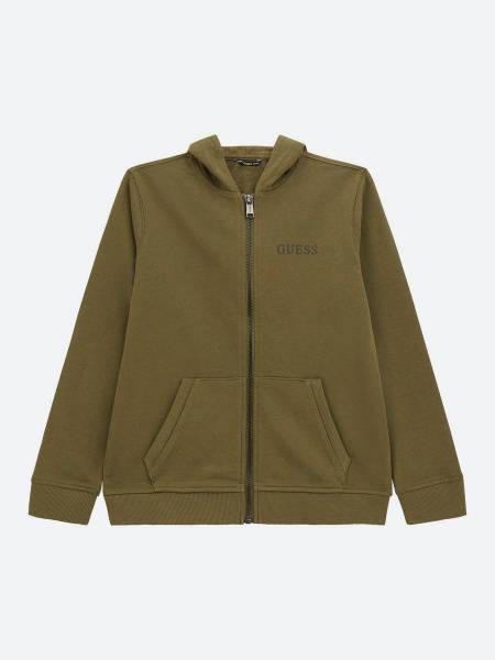 This stylish GUESS boys' cardigan is perfect for active boys who need comfort and style. Made from soft, breathable cotton, this hooded sweatshirt offers all-day comfort. The zip-up closure and hood provide practical protection from the elements, making it ideal for school, playtime, or sports. This comfortable clothing for boys is a must-have addition to your child's wardrobe. It's part of our GUESS kids' collection of active wear.
