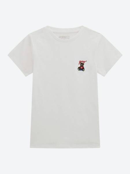 This GUESS Ss T-Shirt is a wardrobe essential for girls. Crafted from premium cotton and elastane blend, it offers exceptional comfort and durability. The short-sleeved design makes it perfect for any season, while its stylish and trendy look complements any outfit. Made to high quality standards with a unique design, this GUESS tee is an ideal gift for any fashion-conscious girl. Easy to care for and built to last, it's a comfortable everyday staple that won't lose its shape or style.