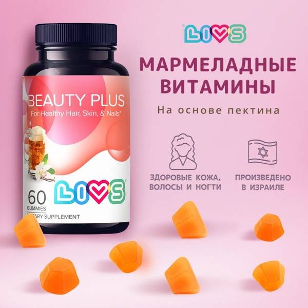 Achieve radiant skin, lustrous hair, and strong nails with LIVS gummy vitamins – a delicious and natural way to support your beauty from within. Our 100% natural formula, free from GMOs, preservatives, artificial colors, flavors, and potential allergens, nourishes your hair, skin, and nails with essential vitamins and minerals. LIVS Hair, Skin & Nails gummies promote: skin elasticity & collagen synthesis; hair growth, shine & strength; nail health & strength; and cellular rejuvenation. Formulated with Vitamin D3, Vitamin E, B Vitamins, Vitamin A, Vitamin B12, Zinc, Iodine, and Biotin for comprehensive beauty support. Made in Israel. Vegetarian-friendly.