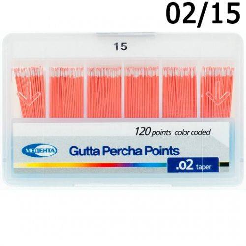 gutta percha cones, root canal obturation, endodontic cones, dental cones, ISO standard cones, No. 15 cones, Meta cones, pink cones, endo obturation, root canal filling, endodontics, dental materials, efficient obturation, time-saving obturation, precise obturation, color coded cones, dental supplies, 120 cones.