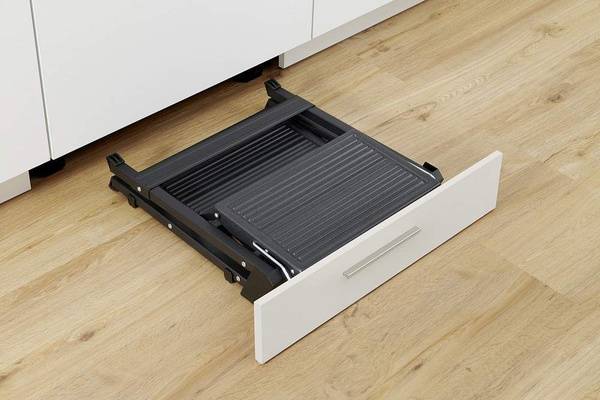 Effortlessly store your Hailo ladder under kitchen cabinets with this innovative Step-fix mounting bracket. Featuring four smooth-rolling castors, this system allows for easy extension and retraction of your ladder, maximizing space and convenience. Constructed from durable galvanized steel and high-quality plastic, this bracket ensures lasting performance and a secure hold. Includes all necessary hardware and instructions for quick and simple installation.