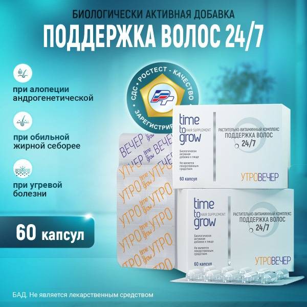 Keywords: Hair vitamins, skin vitamins, nail vitamins, hair growth vitamins, hair loss treatment, biotin, keratin, vitamins for hair growth, hair supplements, skin supplements, nail supplements, collagen, time to grow, hair care, skin care, nail care, anti-hair loss, stress reduction, digestive health, healthy hair, healthy skin, healthy nails, vitamins for women, vitamins for men, morning and evening capsules, natural ingredients, dermatologically developed.