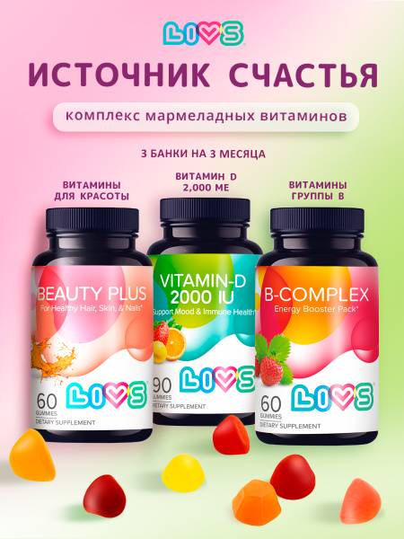 Keywords: LIVS vitamins, gummy vitamins, hair skin nails vitamins, vitamin D3, B complex vitamins, vitamin bundle, multivitamins, hair growth, skin health, nail strength, immune support, energy boost, stress relief, mood booster, kosher, halal, vegetarian, gluten-free, GMO-free, made in Israel, natural vitamins, gummy supplements.