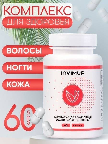 Unlock your natural radiance with INVIMUP, a comprehensive hair, skin, and nail vitamin complex formulated for men and women. Our advanced formula combines MSM, L-cysteine, zinc citrate, and vitamin B5 to support collagen, keratin, and melanin production – the building blocks of healthy hair, skin, and nails. Experience stronger, shinier hair, reduced hair loss, improved nail strength, and radiant, youthful-looking skin. INVIMUP's potent antioxidant blend promotes skin regeneration, elasticity, and a healthy glow. Made in Russia with the highest quality standards, INVIMUP provides essential nutrients in a convenient capsule form for optimal absorption. Invest in your well-being – choose INVIMUP.