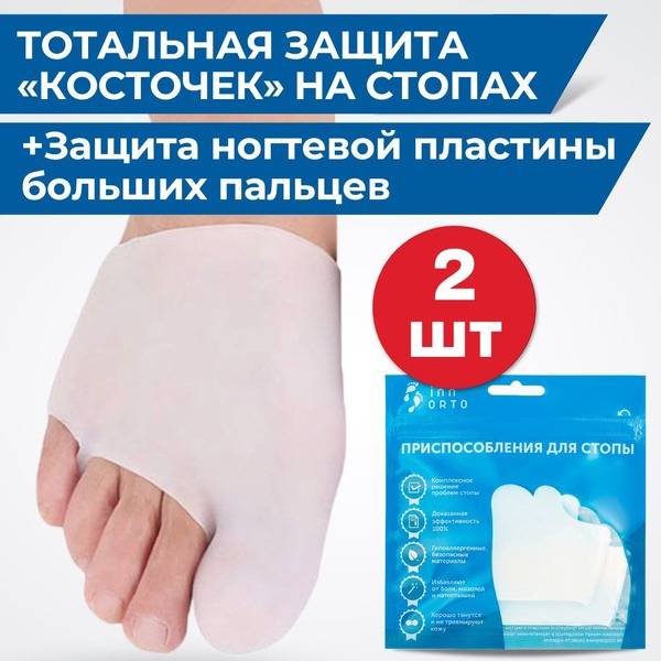 This pair of premium silicone bunion protectors offers complete relief from friction, pressure, and micro-trauma for your big toe and bunion. Providing full coverage of the forefoot, they prevent chafing from shoes. The soft, medical-grade silicone moisturizes and softens skin. A built-in toe separator gently divides the toes, preventing rubbing and blister formation between the third and little toes. Unlike other bunion correctors, these full-foot protectors provide a secure and comfortable fit, even in open-toe shoes. They stay securely in place without slipping or sliding. Simply hand wash in warm soapy water and air dry away from direct heat or sunlight. Store in the original packaging. Made with 100% medical-grade silicone. Size: 5" L x 3.5" W.