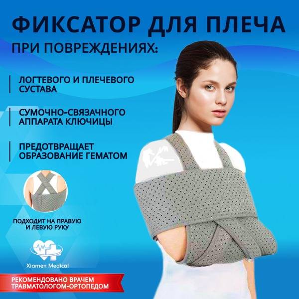 This three-layered, breathable knit arm support bandage provides superior comfort and support for your shoulder and elbow. Ambidextrous design fits both left and right arms, preventing allergic reactions and skin irritation. Its compression helps reduce swelling and pain, preventing further hematoma formation by minimizing stress on blood vessels. The included removable strap and comfortable cuff securely position your arm, promoting proper healing and posture. Ideal for post-cast recovery, surgeries, and injuries including subluxations, sprains, dislocations, and rehabilitation following clavicle, elbow, and shoulder fractures. Provides effective support for the shoulder and surrounding ligaments.